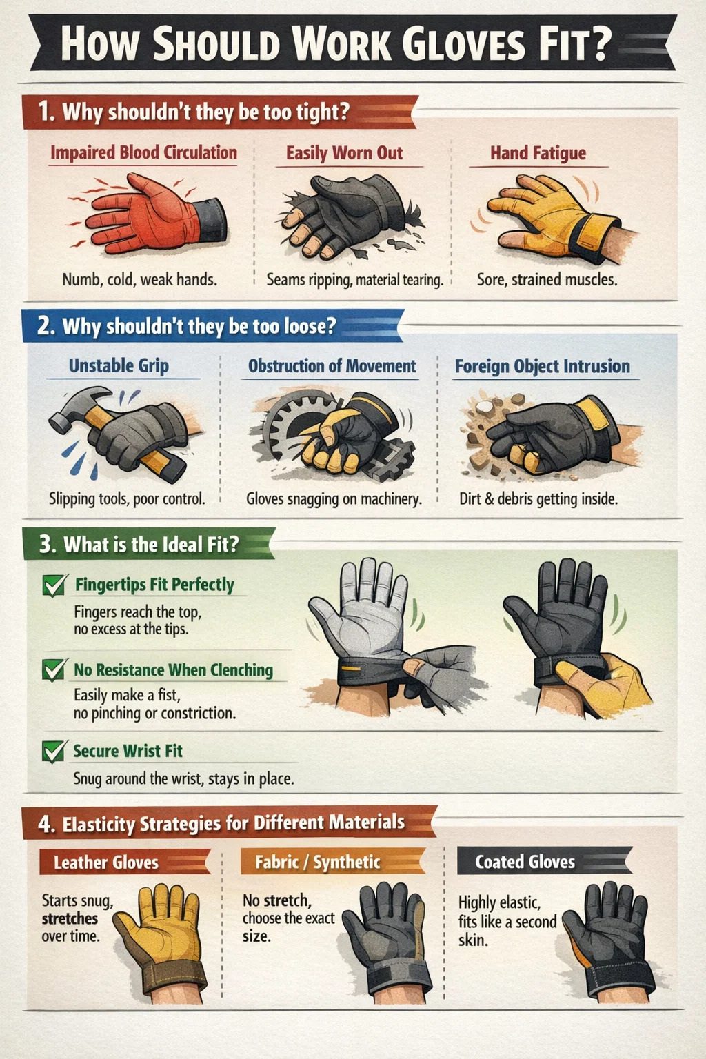 Некоторые люди думают, что более свободные перчатки лучше пропускают воздух, но рабочие перчатки большого размера тоже не являются хорошей вещью: